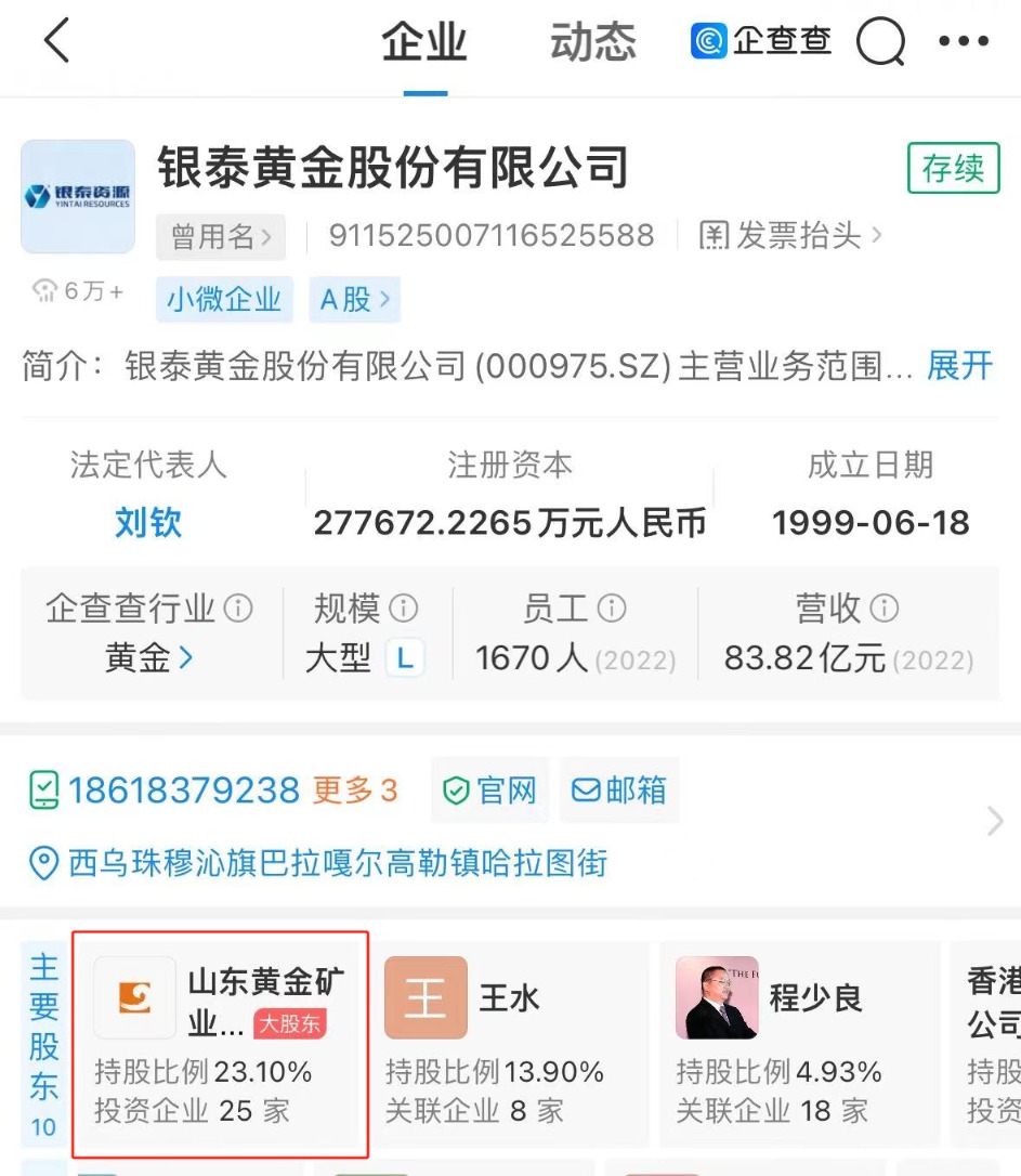 公开信息显示,2022年,山东黄金与银泰黄金控股股东及实控人签订协议,收购银泰黄金20.93%股份,以取得其控制权。